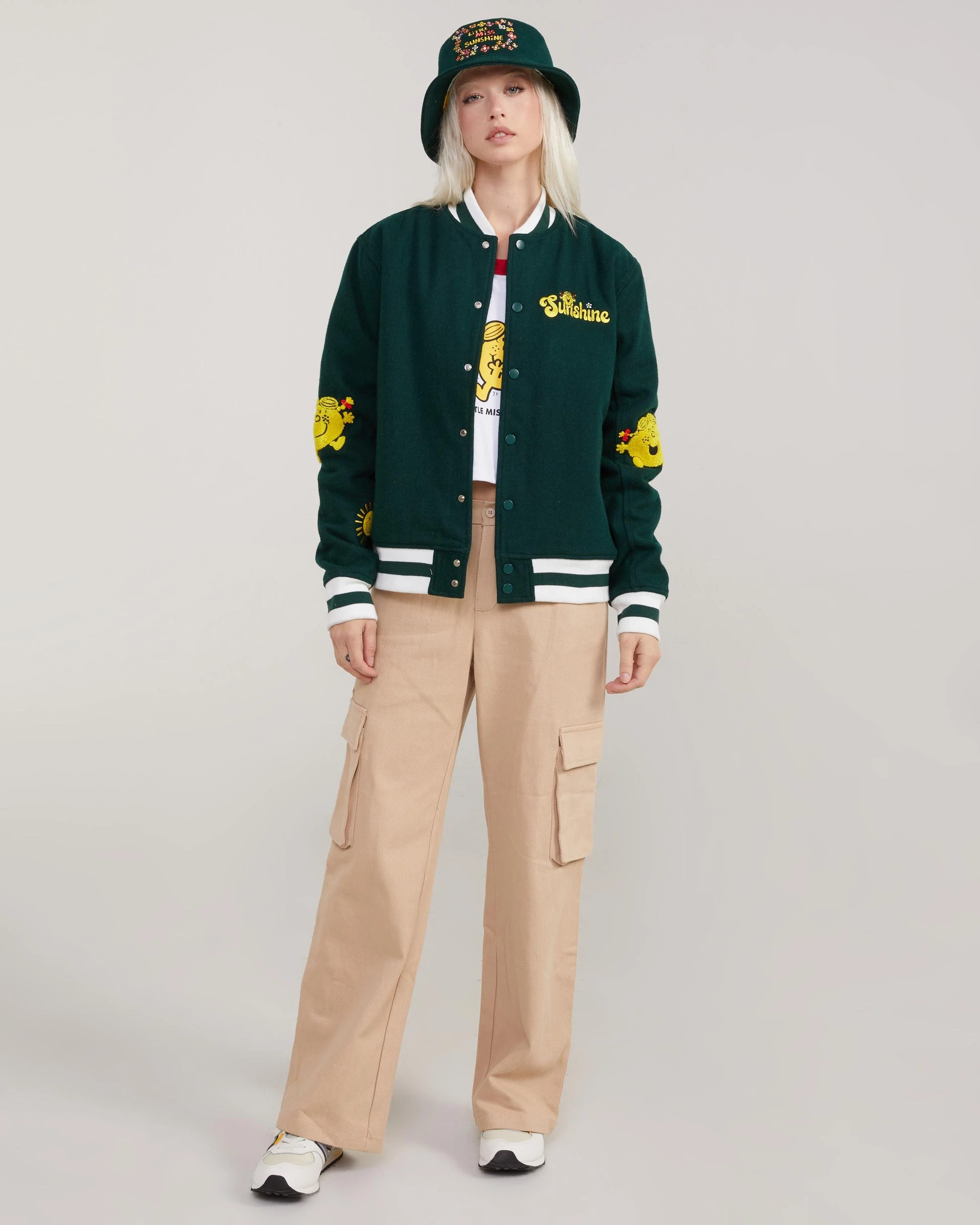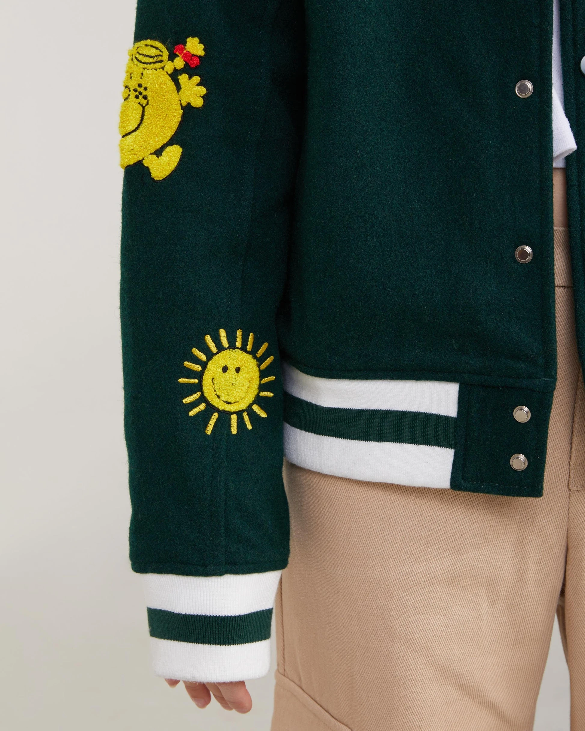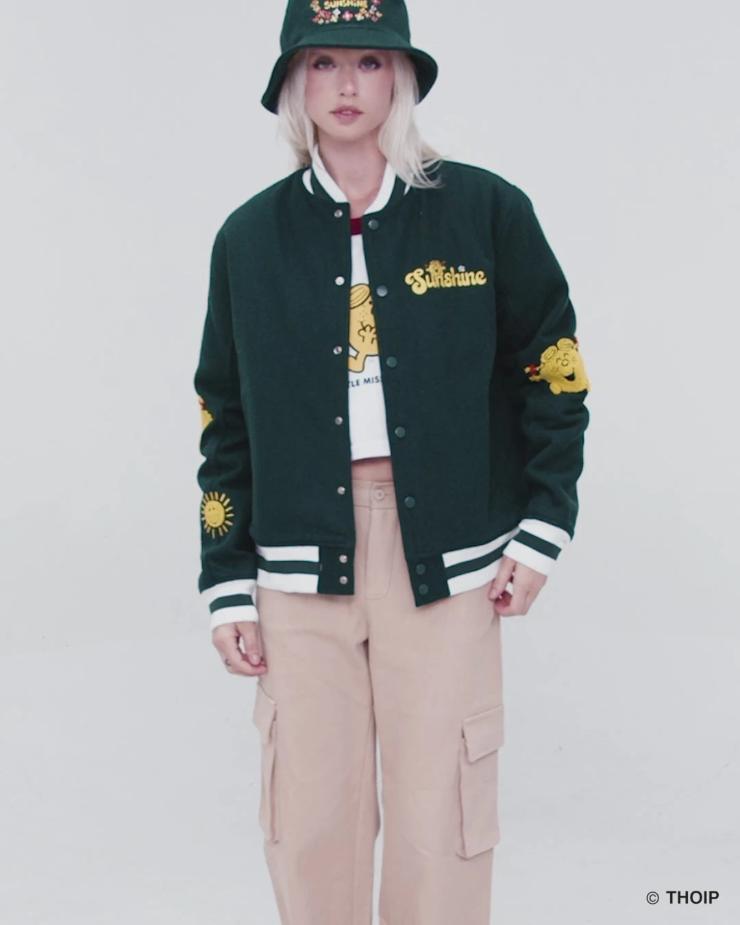 This varsity jacket is the absolute perfect statement piece you will have in your closet for the rest of your life. We created this jacket with supreme detailing from the chenille patches on the arms and the back, to the front chest embroidery, down to the inner satin lining of the jacket with a secret pocket and snap enclosure. We left nothing out on this jacket and it is sure to be a staple in your wardrobe.