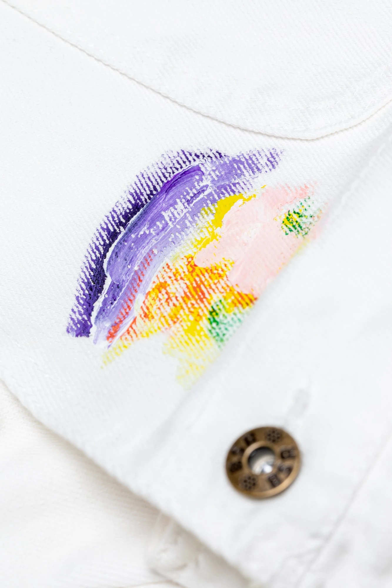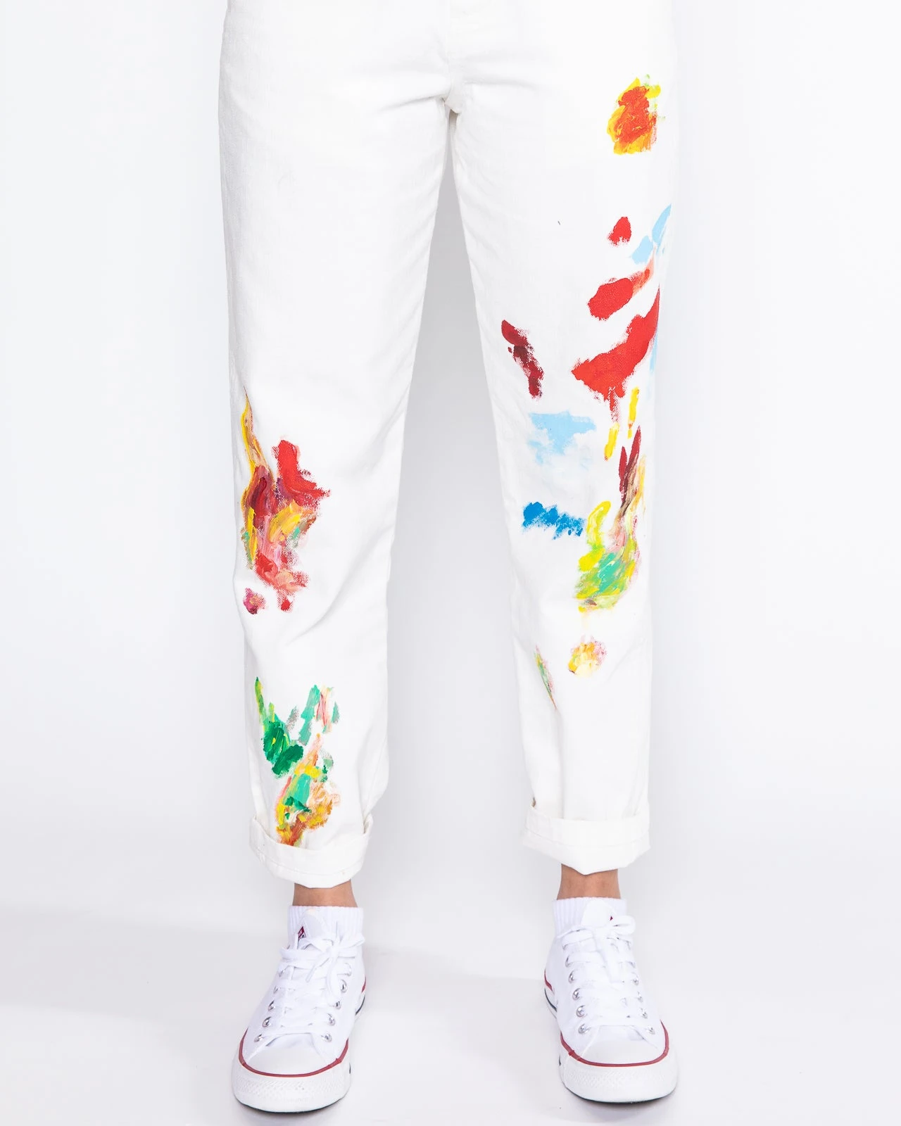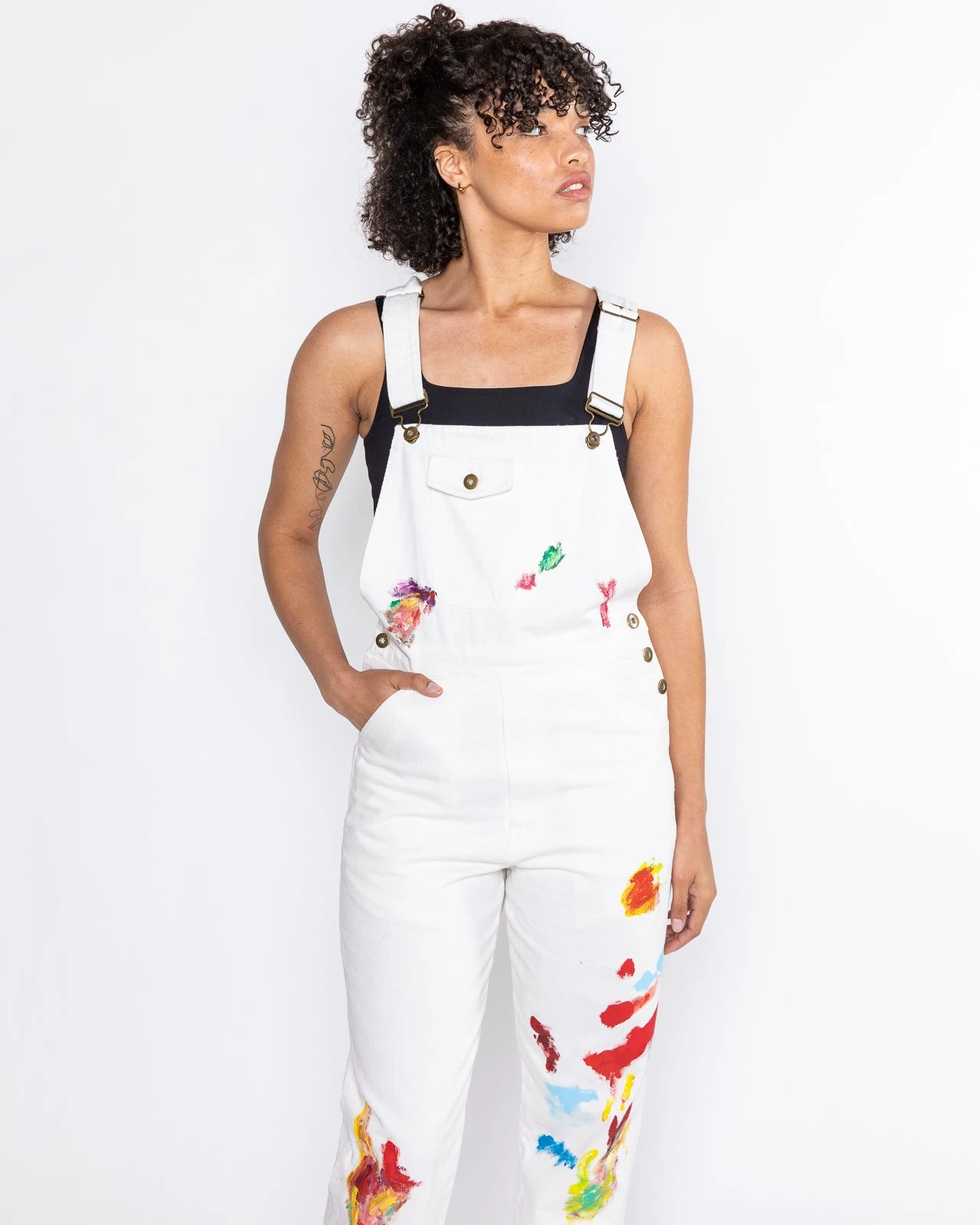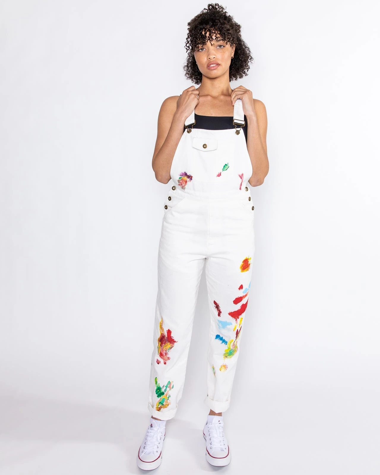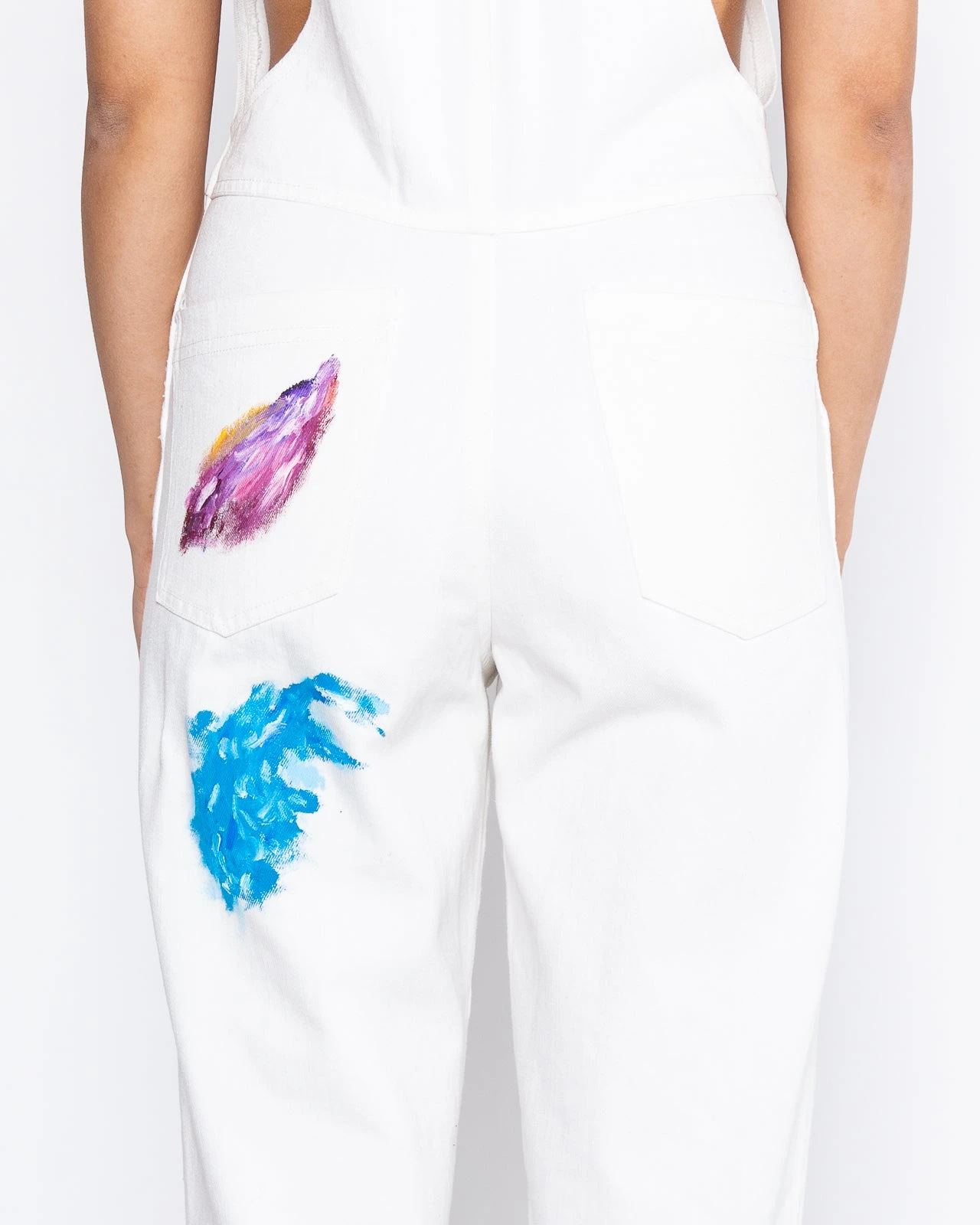 The overalls you never knew you needed until now. Inspired by Dessie’s carefree creative studio process these custom denim, painted overalls will be a perfect fit. The artwork on each pair is unique no two are identical.
